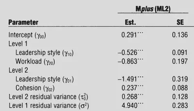 A recurring question that I get asked is how to use full information maximum likelihood (FIML) when performing a multiple regression analysis BUT this time, accounting for nesting or clustered data structure. For this example, I use the the leadership dataset in the mitml package (Grund et al., 2021). We’ll also use lavaan (Roseel, 2012) to estimate the two-level model. The chapter of Grund et al. (2019) is available here. We’ll replicate the Mplus FIML results in Table 16.3 in the chapter and is shown below: